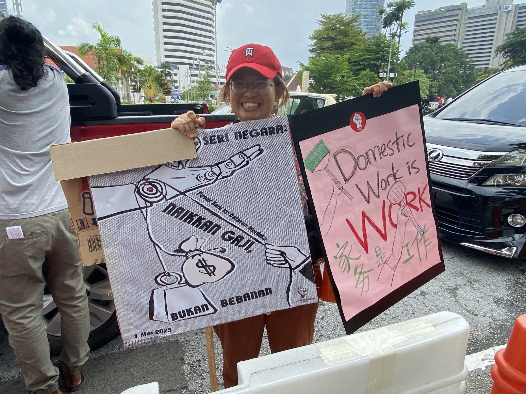 吉隆坡,2025年5月1日 —— 大约1500名工人和民众齐聚街头,参加由五一委员会(Jawatankuasa 1 Mei)联合多个社运组织的第31届的五一劳动节游行。本届游行以“工人撑起国家,要加薪资,不要加重负担”(Pekerja Tiang Seri Negara: Naikkan Gaji, Bukan Bebanan)为主题口号。大部队齐聚吉隆坡中央艺术坊(Pasar Seni),并一路游行至独立广场(Dataran Merdeka),共同宣读并支持《2025年五一劳动节声明》(Deklarasi Hari Pekerja 2025)。
