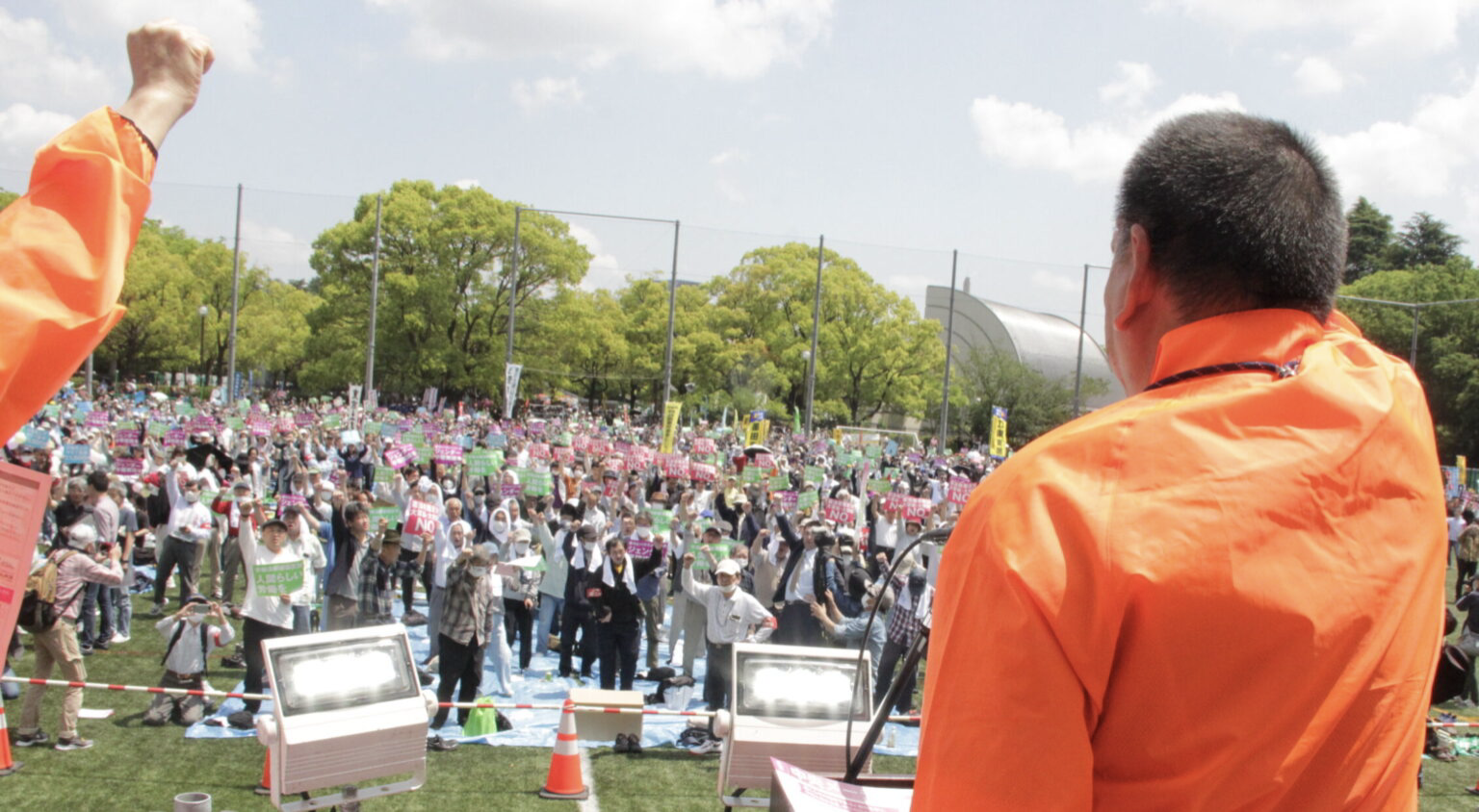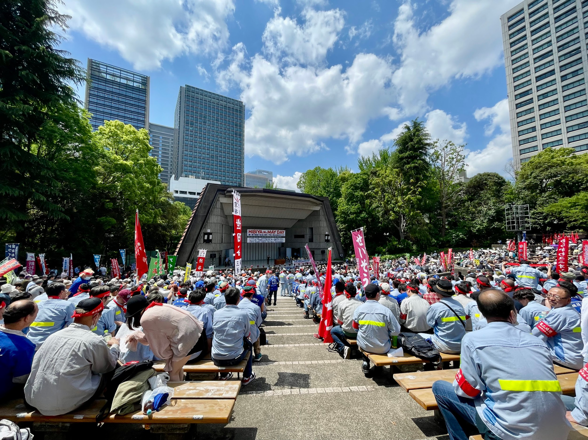 5月1日上午,东京艳阳高照,笔者在日比谷公园野外音乐堂参加了全劳协系工会组织的第96回日比谷May Day。今年,这场历史悠久的五一劳动节集会以“通过劳动者的团结,守护生活与权利、和平与民主”为主题口号,共有3,000人参加。
