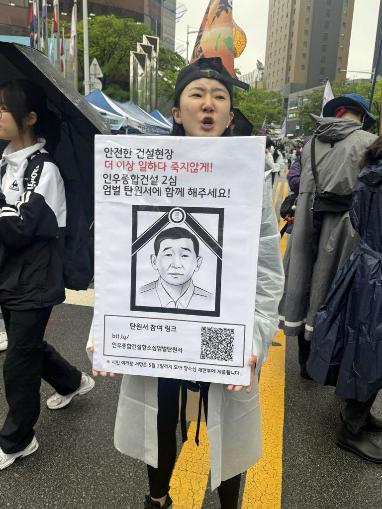 民主劳总釜山本部于五月一日在釜山市中心的西面地区召开了2025年世界劳动节釜山大会。今年的五一节,釜山从上午开始就阴云密布,风力也不小。与笔者同乘地铁前往现场的民主一般劳组总联盟教育委员同志也感叹,往往五一的时候都是觉得热的不行,今年反倒有些凉意。虽然相比于往年在釜山港周边举行的集会,人数上略显下降,但这是因为往年参与釜山劳动节大会的一些大型劳组本次被安排在别处参与集会。但相对应的,本次劳动节也是笔者自2022年以来,见到年轻人最多的一次劳动节大会。除了釜山本部所属的大小劳组和老牌进步政党外,还有移民者人权组织、性别正义组织、环境组织等等大大小小的市民团体参与了本次劳动节大会。大约有一万名工人群众和进步市民团体聚集在西面地区的田浦大路,集会后冒雨向釜山市政府、市议会行进。