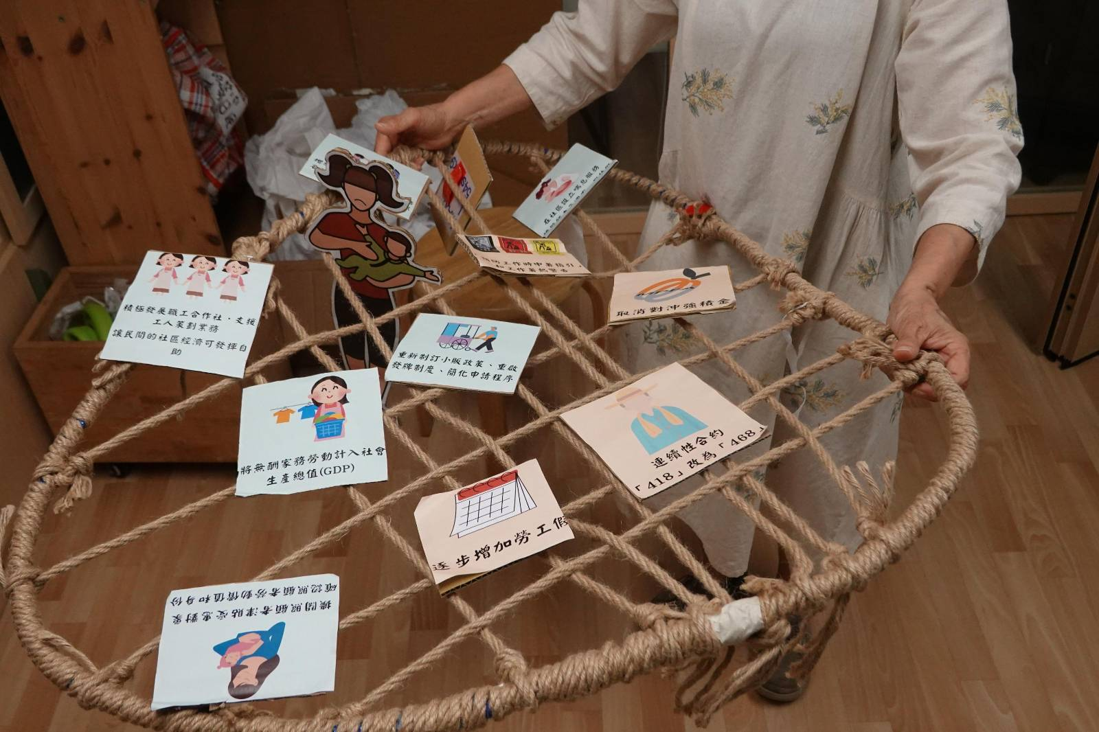 就在摊位的旁边,有一位女子穿着雨衣、拿着一张画出来的遗像,上面还有个QR code,连结到的是这个google连署表单页面。这名女子自己一个人拿着遗像,站在马路中间,不断的大声呼喊。原来她的父亲是一名建筑工,但在工地上班时,搭建中的高楼并没有安全栏杆,甚至没给他戴安全帽,他就因此在一次职灾中丧生了。建商虽然被罚款,现场负责人还被判徒刑,但公司迄今毫无歉意,甚至诬指他父亲年老、酗酒,想减轻公司的责任。此案件已经有26398人连署,才让现场负责人遭判刑,但他们要求政府更应该对公司究责。