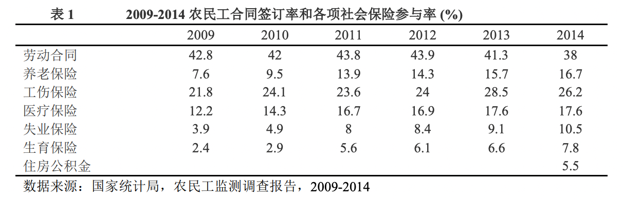 - 章莉, 高琴, 杨穗, & 裴宝雨. (2016). 农民工社会保险参与状况及其变化趋势. 中国收入分配研究院工作论文, 47.