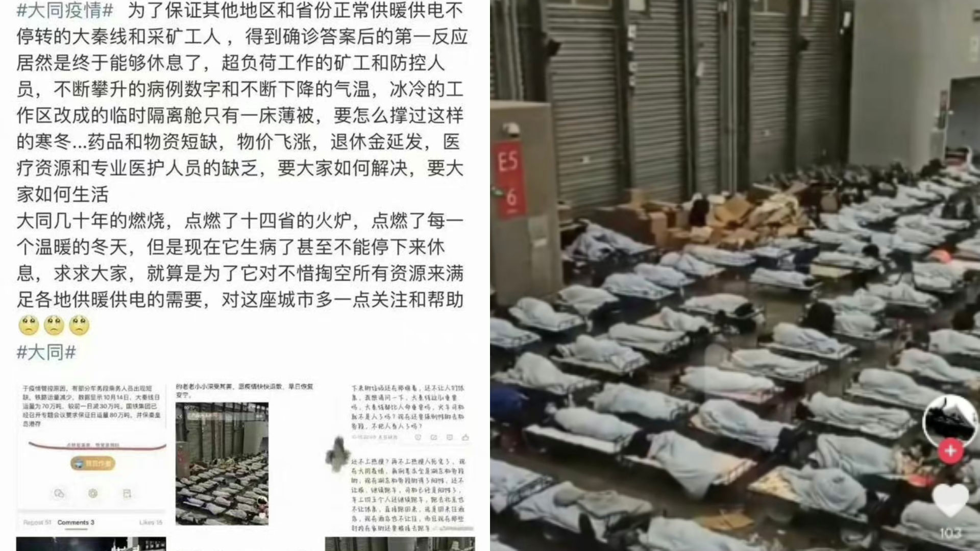 10月19日,山西大秦铁路湖东电力机务段人员爆发群体染疫。然而,网络流传讯息却显示,为了保障山西煤矿向外供应,司机们被迫顶着疫情继续工作,煤炭运输并未停止,工作间甚至被直接改成方舱医院。阅读原文