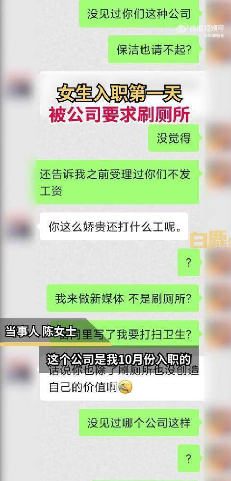 女生入职第一天被公司要求刷厕所:离职后仍被HR人身攻击
