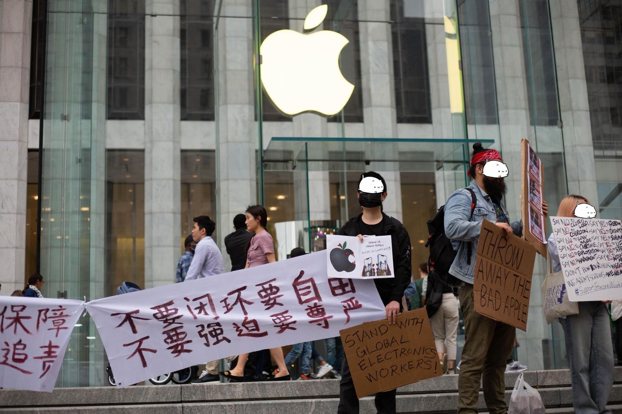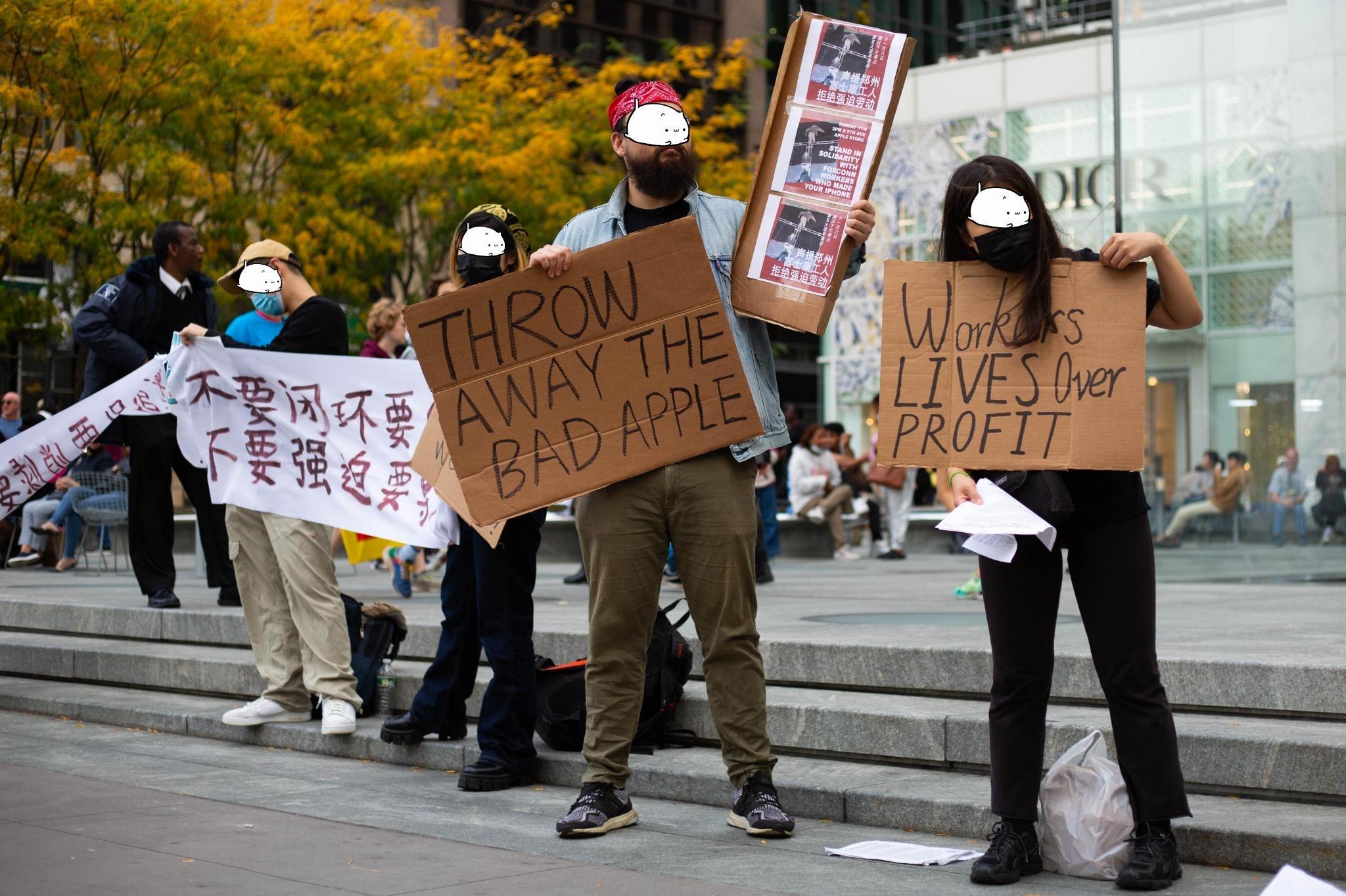 纽约街头抗议苹果公司,诉求保障富士康工人权益
