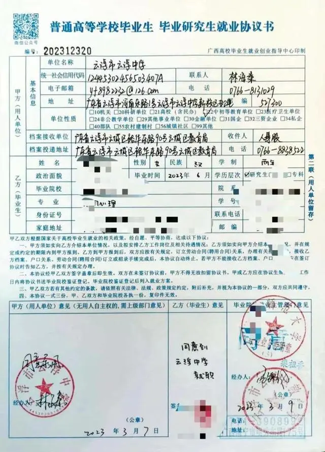 4月,南宁师范大学一毕业生在已经签署三方协议后被用人单位云浮中学告知:因本硕专业不一致,未通过市教育局审核,三方协议无效。但云浮中学在招聘过程中并未提到要求本硕专业一致,临时擅自决定协议无效导致该毕业生也错过了其他就业机会。该毕业生此后多次向云浮中学、云城区教育局及云浮市教育局反映,但至今没有解决。阅读原文