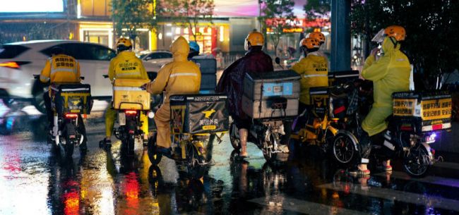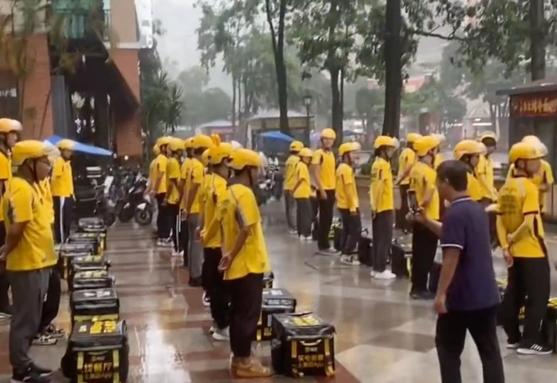 刮风下雨也要送外卖是生活所迫,但要求外卖员在雨中集合开会就是管理者心彻底坏了。