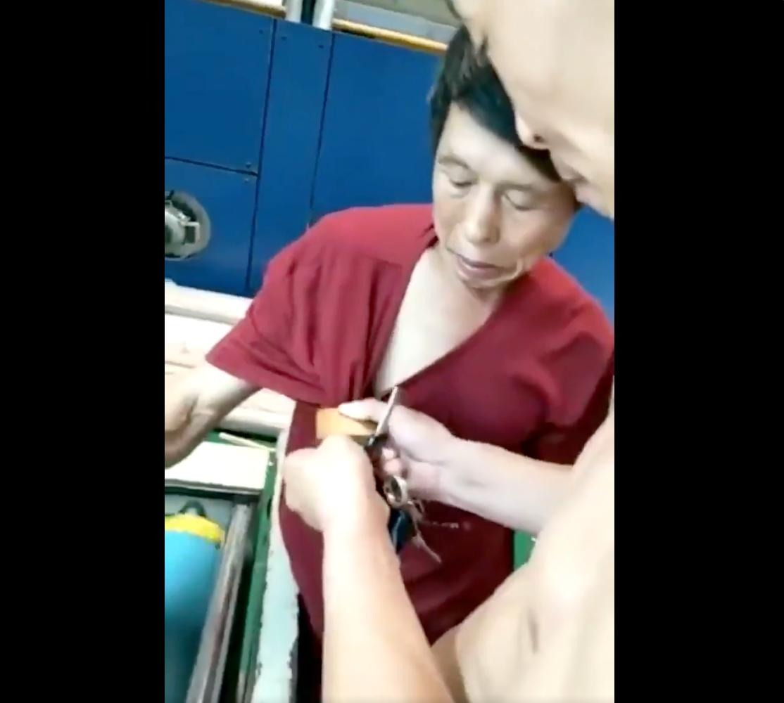 福建泉州印刷厂为了防止工人干不够时间就离开,用锁头把工人锁起来。来源