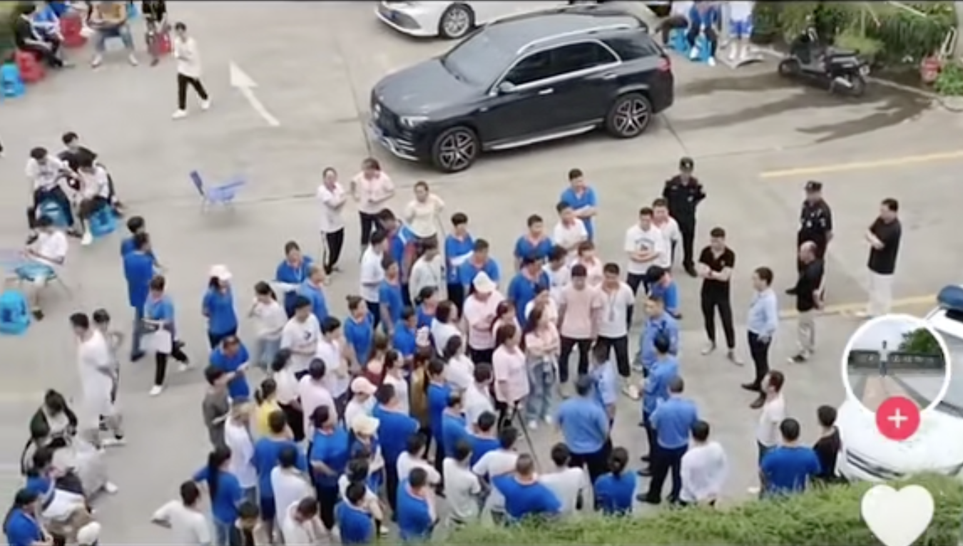 8月中,广东东莞一家制造手机保护膜、盖板等周边产品的公司阿特斯倒闭。然而,厂内员工却没有接到倒闭通知,而是一则8月14-16日的休假通知。在此期间,老板搬空厂房内机器。工人聚集抗议,质疑工厂恶意倒闭,根据劳动法索要合理赔偿。相关视频