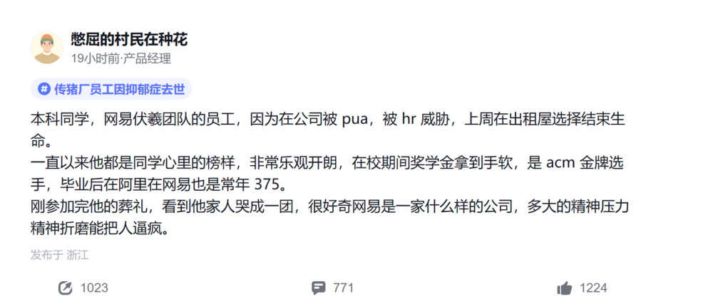 9月中,社交媒体有人爆料,网易伏羲团队的一名员工,因为在公司被PUA、被HR威胁,在出租屋选择结束生命。去世前两天,他曾向公司透露抑郁倾向,并申请年假就医,此事也得到了网易确认。后续,网易承诺负担该员工子女的教育费用至22岁大学毕业,但否认HR威胁、PUA等事,只承诺进行内部调查。但这样的公司内部调查,真的能还去世员工一个公道吗?阅读原文