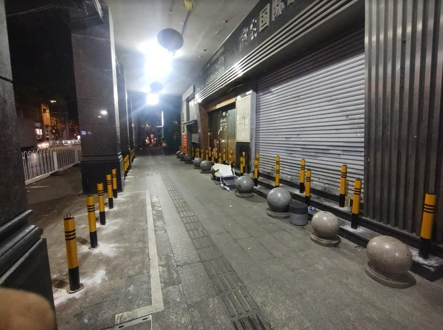 10月13日,有人爆料广州市大德路的台阶遭安装护栏,明显是为了禁止街头露宿者在此休息。大德路一直是失业的打工者们露宿的地方。深夜,人们聚集在银行门口,不知道今晚该怎么度过。阅读原文