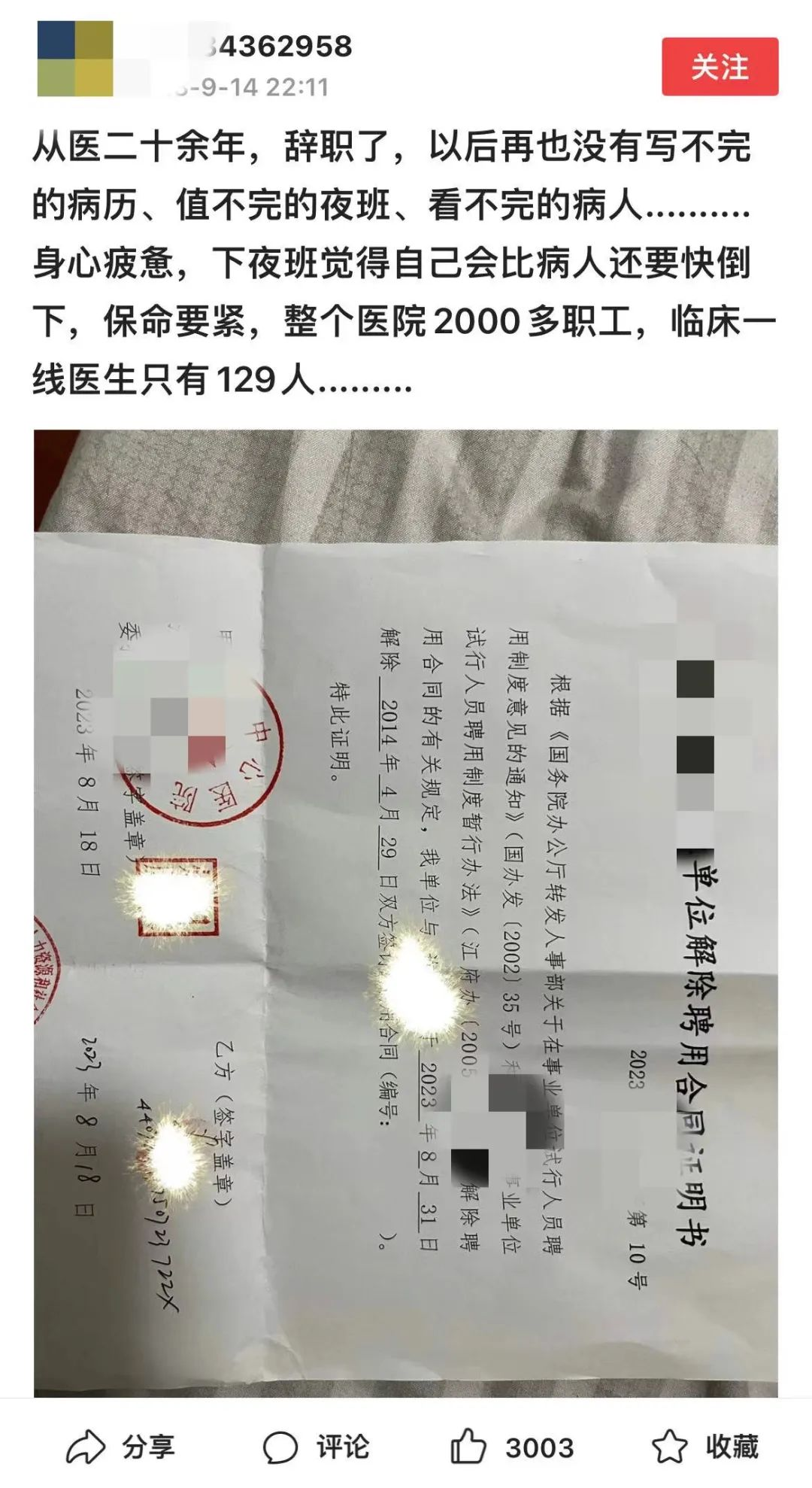 广东某医院医生称全院职工2000多人一线医生仅129人,引发共鸣