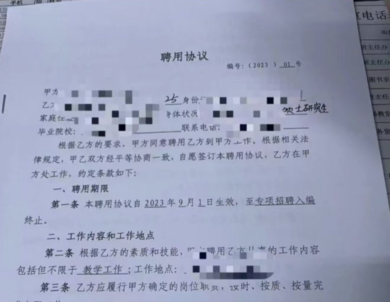 11月14日,河南师范大学40余名学生被教育局毁约。他们参加了新乡市教育局举办的2023年局属学校专场招聘会,等待3个月后却被告知专项招聘未获上级部门审批通过,项目被暂停。在签订聘用协议中提到,专项招聘岗位带有编制,一经录用可入编。不少人因错过就业黄金期或证件被签约单位扣押,错失再找工作的机会;而有的同学为参与新乡市专项招聘,于原工作单位解约并赔付两万元。这些学生认为,新乡市教育局存在失职。阅读原文