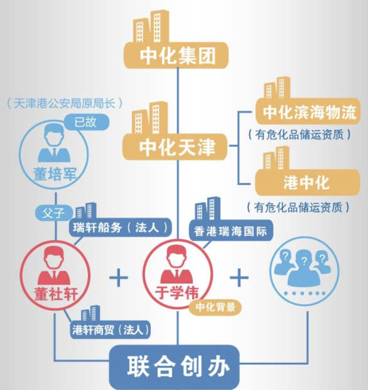天津港火灾大爆炸事件的调查报告中,出现了数十次违规许可、违规审批等类似字眼。这种情况违背常理,如此多的漏洞本应在事故发生前就暴露出来,而事件中的瑞海公司却一路畅通无阻。原因在于,公司主要股东董社轩和于学伟,一位的父亲是天津港公安局原局长,一位是大型央企中化集团的前任高层,与天津港政府部门高层关系良好。牢固的政商关系才是天津港大爆炸的真实原因。而涉及储存、生产危险品的行业却大多都有这类官商勾结。