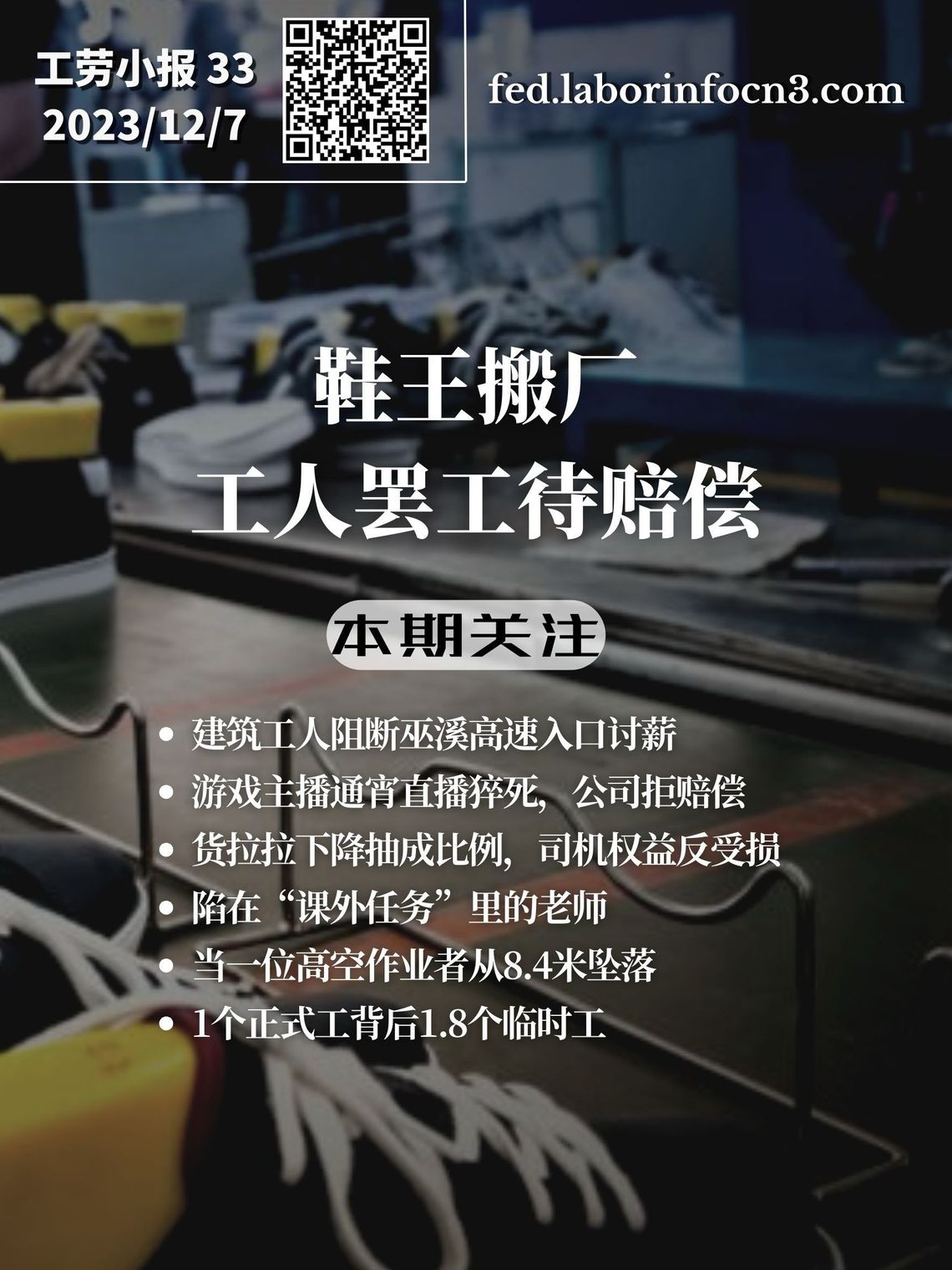 以上是第33期工劳小报的全部内容。我们正在探索将日常的工人资讯定期整理为 Newsletter,希望你可以来信([email protected])提出建议或加入成为志愿者,同时也请你多多分享给墙内的朋友们。点击下方按钮可以订阅和阅读往期内容。