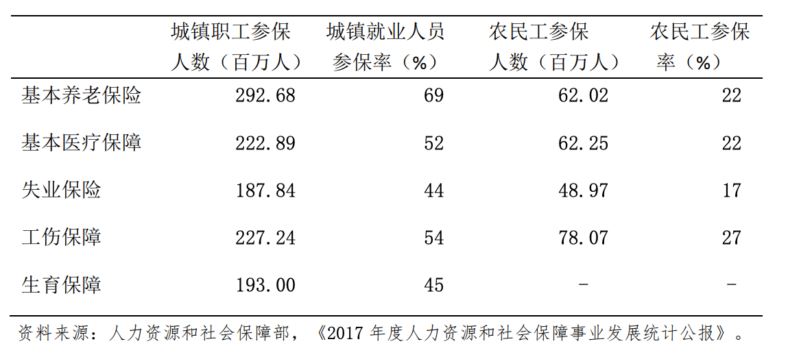 今年是62岁的曹在心在深圳打工的第39年,他做过流水线工人、建筑工人、餐厅服务员、货车司机和滴滴司机,目前在做门卫。奔波这么多年,他本应领着退休金,在家好好养老。但因缺乏意识,加上雇主刻意诱骗,像曹在心这样不缴纳社保的老人非常多。2017年人力资源和社会保障部发布的报告称(见上图),仅22%左右的农民工参加了职工基本养老保险。没有了退休后的这一固定收入,他们不得不继续出门打工,直到自己干不动的那天。阅读原文1,阅读原文2