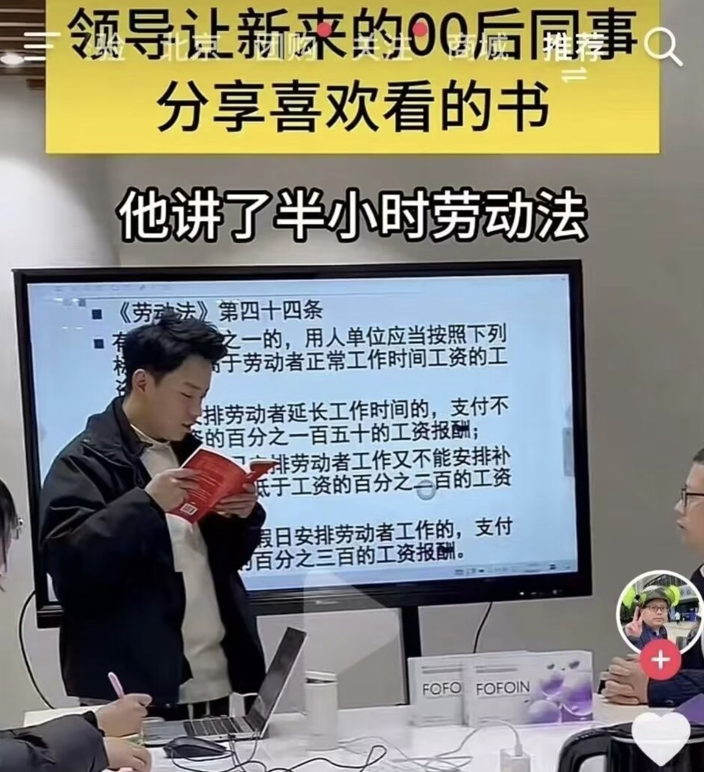 当一位新员工在公司分享他喜欢的书籍时,他选择了花半小时介绍《劳动法》。