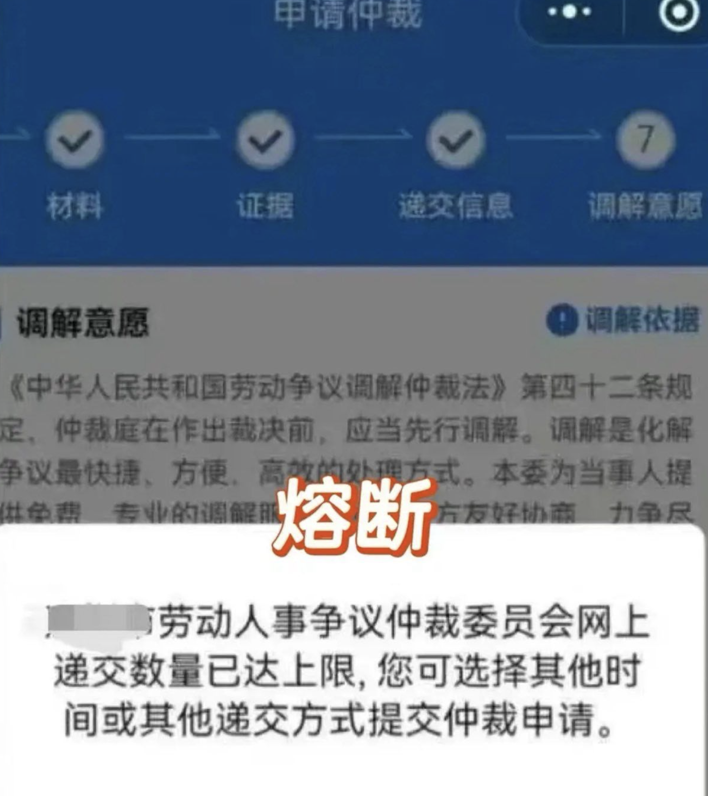 近期,有网友爆料称深圳劳动仲裁委员会网上递交数量已达上限,竟开启“熔断”机制。