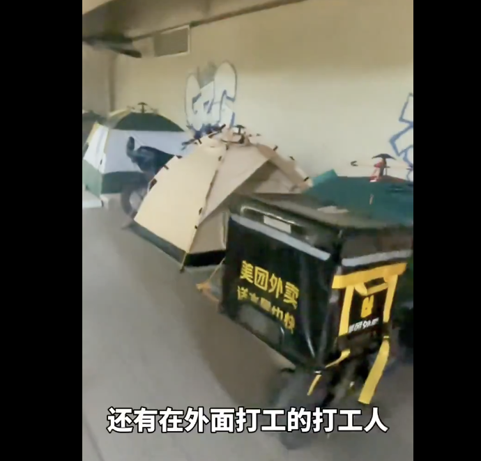 广州桥洞下有不少帐篷,其中部分帐篷旁还停着送外卖的电动车,可能是零工工人的住所。视频被发布后,帐篷很快就被清理了。据说“上面”会好好安排这些人,不知是什么意义上的安排。
