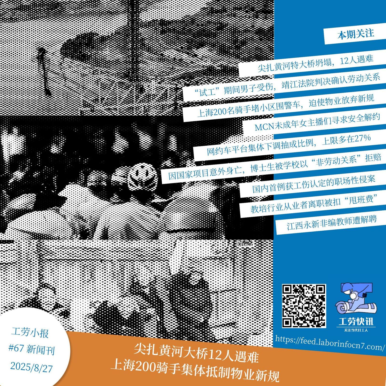 尖扎黄河大桥12人遇难,上海200骑手集体抵制物业新规|工劳小报 #67 新闻刊