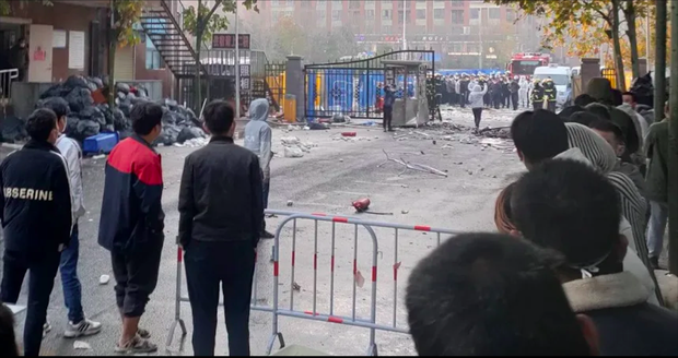 22日晚,工人们开始在富士康园区内抗议示威。网络传播视频显示,成百上千工人高喊“维权”、“讨薪”以及要求回家,并与一群身穿白色防护服、手持盾牌和棍棒的警察发生冲突。一些工人拆除围栏或拿起周边的砖头、木棍向警察队伍砸去,特警到场后用高压水枪和催泪瓦斯镇压驱赶抗议工人。