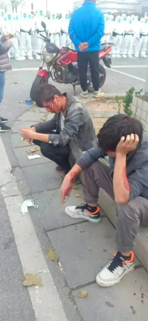 23日,多段网络视频中显示有工人被身穿防护服的人员持棍殴打,还有工人被担架抬走。事后,并没有任何关于工人受伤和被抓捕的官方公告,但根据工友的说法,当天有大量的工人被警察殴打和抓捕。11月24日郑州富士康为出现薪酬待遇不一致的“技术错误”公开道歉,保证实际薪酬会与招聘海报一致,如果新聘员工想要返乡可支付1万元补偿。后续也有富士康工人表示,厂方曾内部发布紧急通知,如果员工留下来工作到过年可挣2万元,但大部分员工还是选择离开。