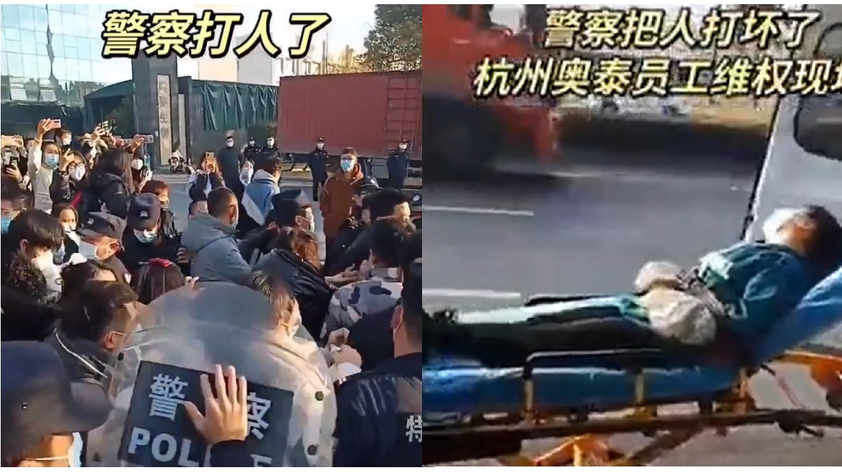 与此同时,1月5日,位于杭州的艾康生物技术公司的工人也展开了维权行动;1月9日,同样在杭州的奥泰生物工人也开始聚集抗议。兩家公司工人的处境与重庆中元汇吉工人的是相似的。工厂试图通过在严格防疫政策下生产抗原试剂大赚一笔,于是以高工资和高留任补贴将工人骗过来,但仅仅1个月后因为疫情政策调整,市场需求骤减而强制清退工人。这三家工厂内的工人维权都较为激烈:工人们殴打劳务中介,与警察发生肢体冲突。甚至,杭州奥泰的工人走出厂区、游行前往市政府逼迫老板出面谈判。后续,工人们虽然并未拿到原本承诺的全部补贴,但仍然获得一定的赔偿金。其中,重庆中元汇吉的劳务中介将工资提高到28元每小时,并额外给予2000元返费;杭州艾康工人获得每人3000元的赔偿;奥泰工人获得赔偿较少,每人仅有500元。
