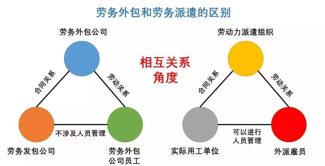 目前主流的用工方式有两种:外包和派遣。外包就是劳务公司完全从企业里面把项目外包下来,员工入职后就跟企业没有关系了。如果出现社保、仲裁或工伤等问题,都由外包公司负责。另外一种叫派遣,属于一个三方关系。派遣公司的员工被派遣到企业去上班,如果员工出现福利待遇问题、仲裁赔偿或工伤等问题,双方都有责任。早些年的话,其实是派遣会多一些。那时候大量派遣公司流行,外包还没有那么成熟。为了节省成本体制内体制外、好的单位等都在用派遣形式。